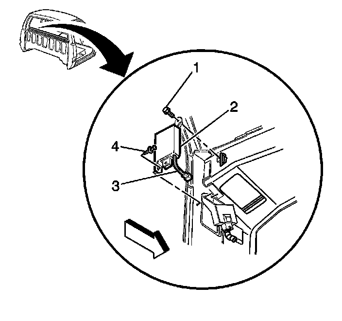 3. Install the alarm module retainer (4) through the bottom of the module by reaching up from under the instrument panel.