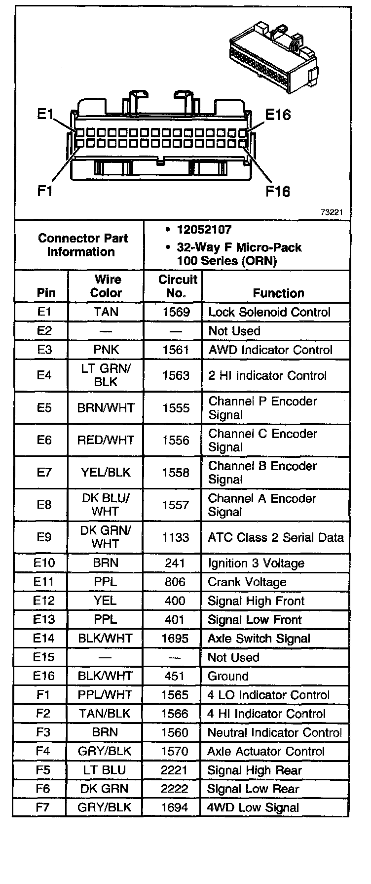 Transfer Case Encoder Motor Connector C1