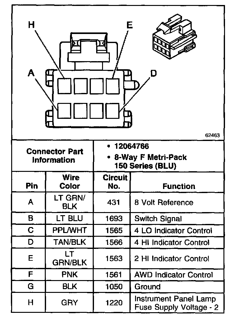 Transfer Case Shift Control Switch Connector C2