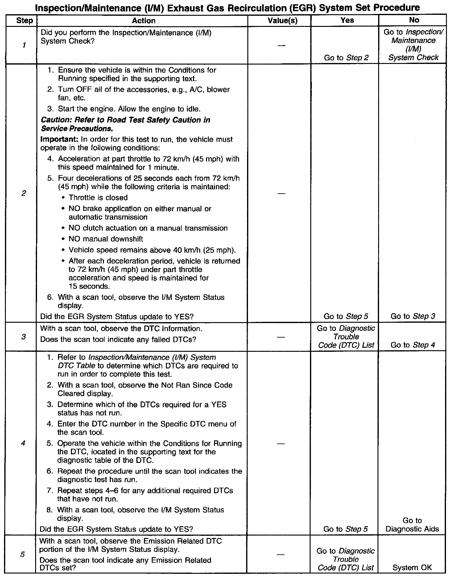 I/M Exhaust Gas Recirculation (EGR) System Set Procedure