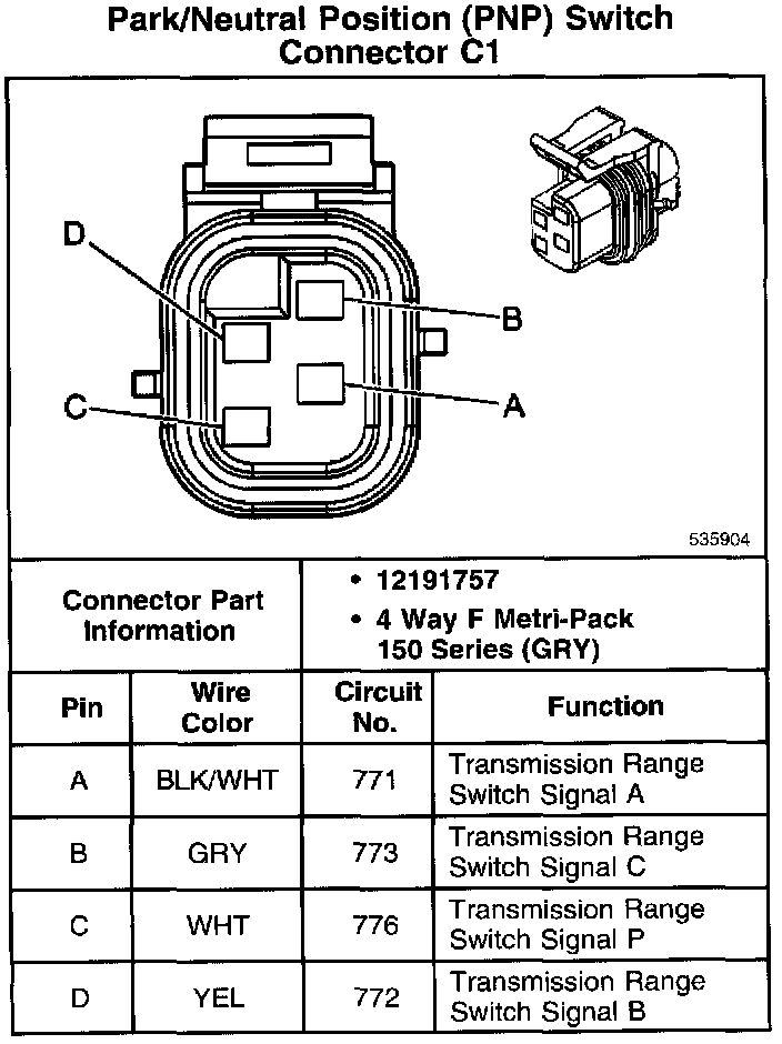 Park/Neutral Position (PNP) Switch Connector C1