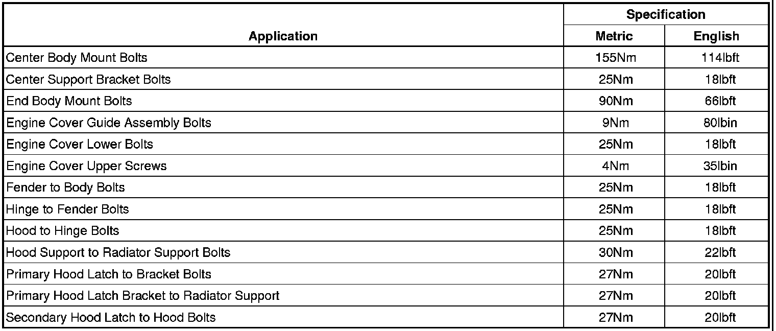 Fastener Tightening Specifications: Body Front End