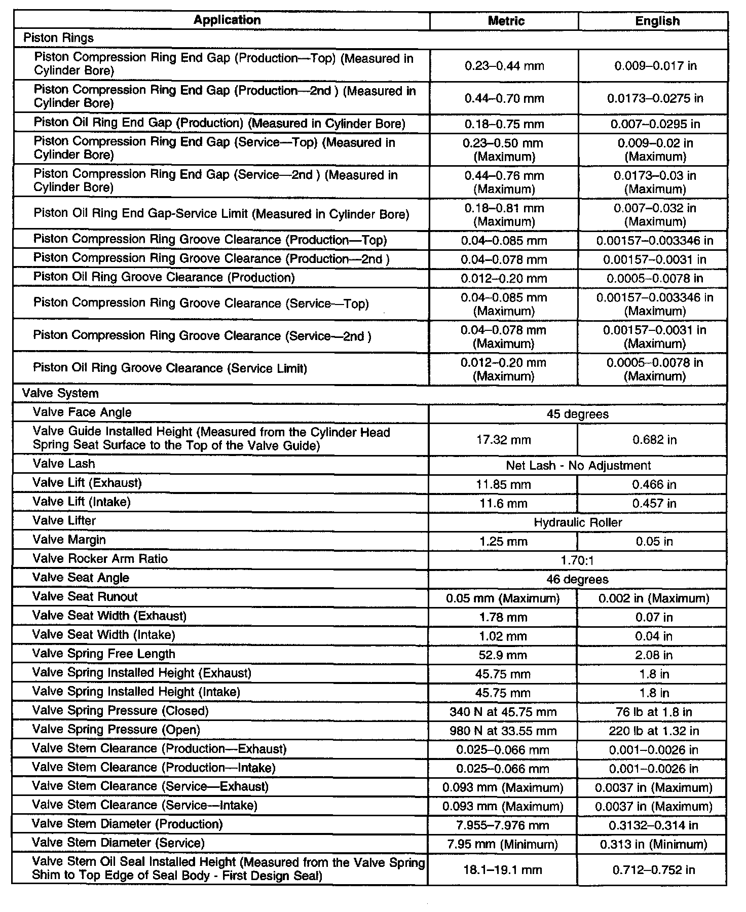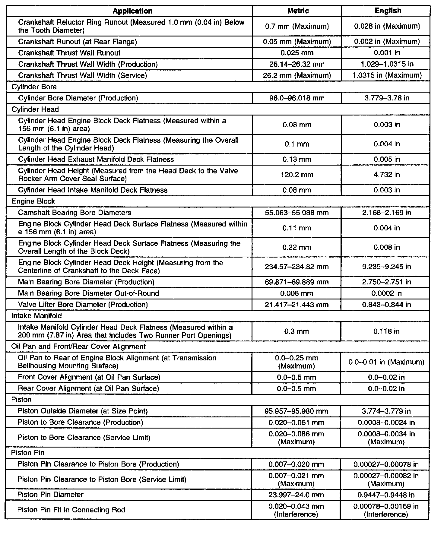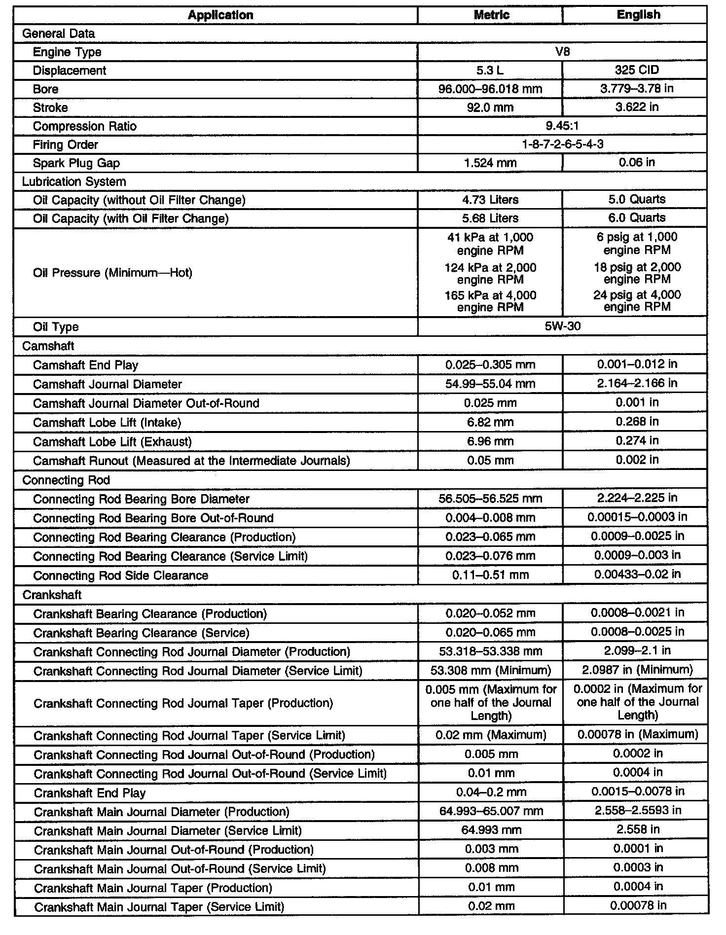 Engine Mechanical Specifications