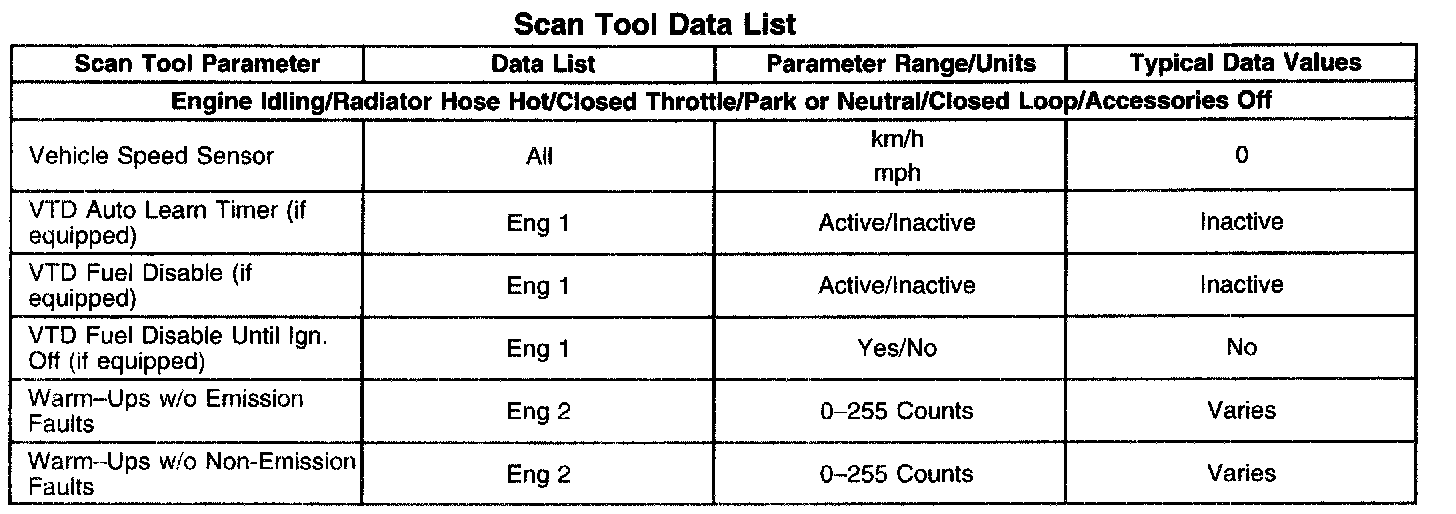 Scan tool values from a properly running engine may be used for comparison with the engine you are diagnosing. The Engine Scan Tool Data List represents values that would be seen on a normal running engine.