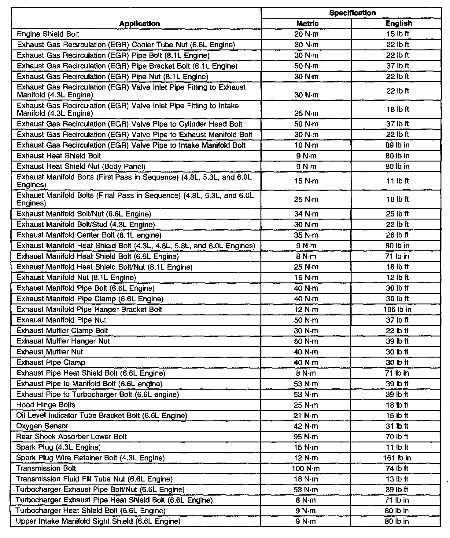 Fastener Tightening Specifications