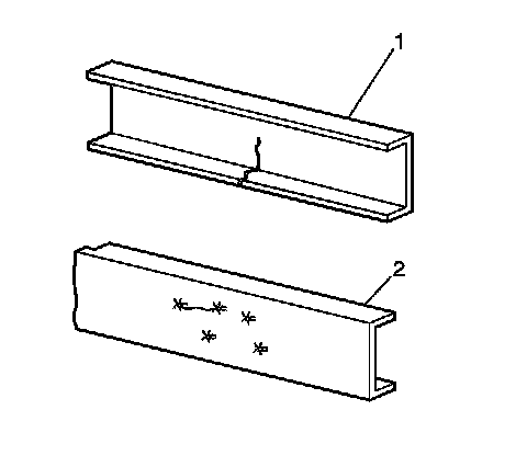 If the vehicle is involved in a collision, inspect for stress crack (1) and/or spotted stress (2) in the frame or for signs of damage.