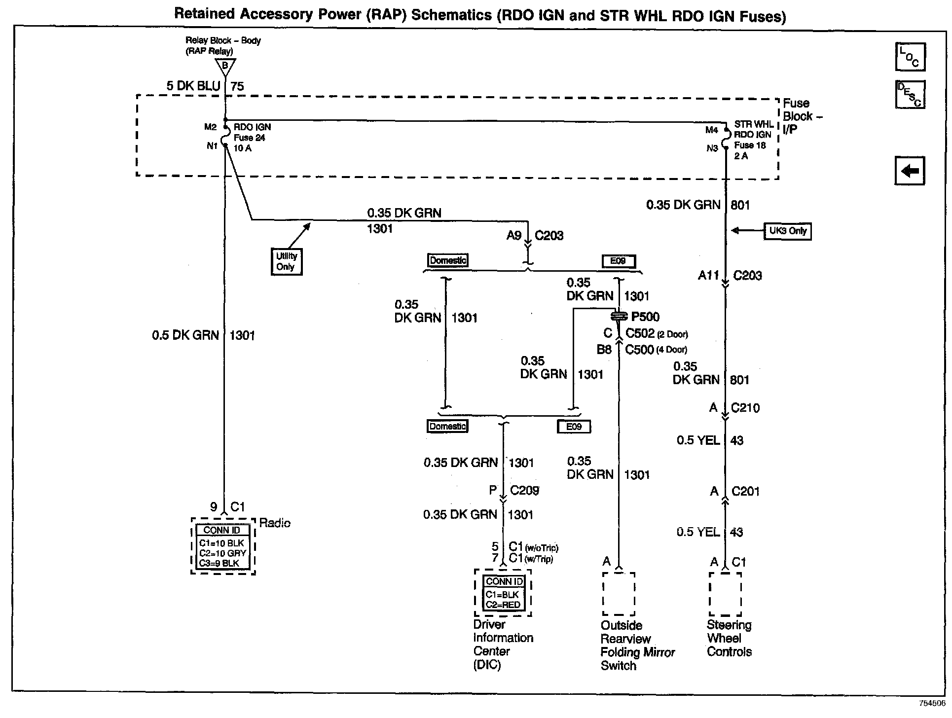 Retained Accessory Power (RAP) Schematics: RDO IGN And STR WHL RDO IGN Fuses: