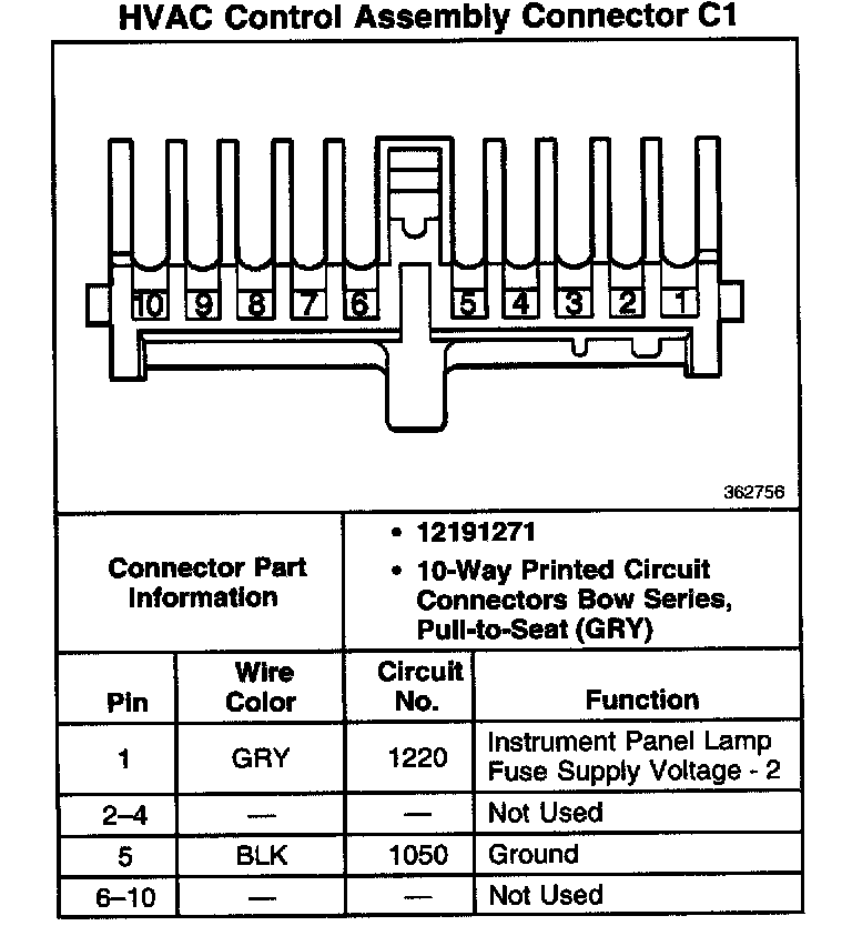 HVAC Control Assembly Connector C1 - HVAC Systems - Manual: