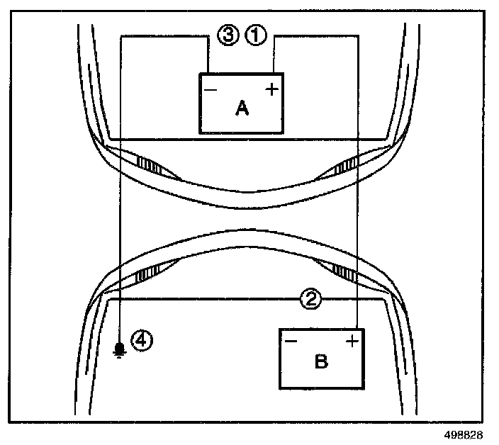 ^ Make sure that the jumper cables do not have loose clamps or missing insulation.