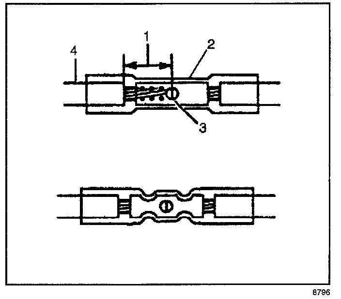 9. Insert the wires into the splice sleeve until the wire hits the barrel stop. The splice sleeve has a stop in the middle of the barrel in order to prevent the wire from passing through the splice (3).