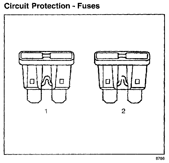 The fuse is the most common method of an automotive wiring circuit protection. Whenever there is an excessive amount of current flowing through a circuit the fusible element will melt and create an open or incomplete circuit. Fuses are an one time protection device and must be replaced each time the circuit is overloaded. To determine if a fuse is open, remove the suspected fuse and examine the element in the fuse for an open (break). If not broken, also check for continuity using a DMM or a continuity tester. If the element is open or continuity is suspect, replace the fuse with one of equal current rating.