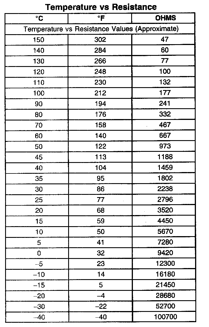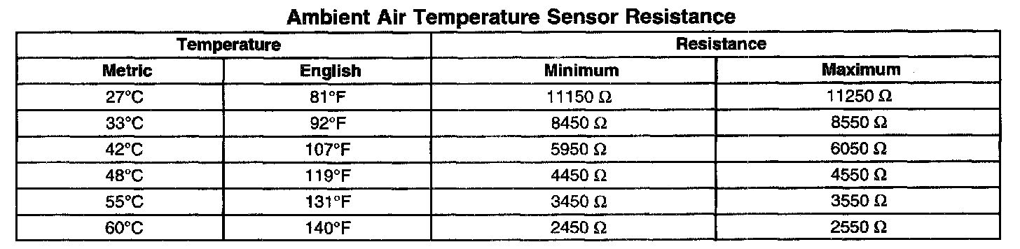 Ambient Air Temperature Sensor Resistance: