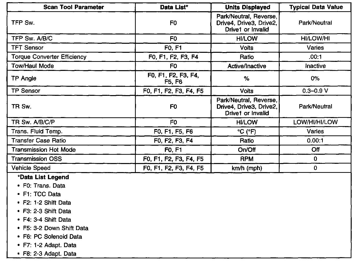 Transmission Scan Tool Data List (4.3 L)Use the scan tool data list under the following conditions: