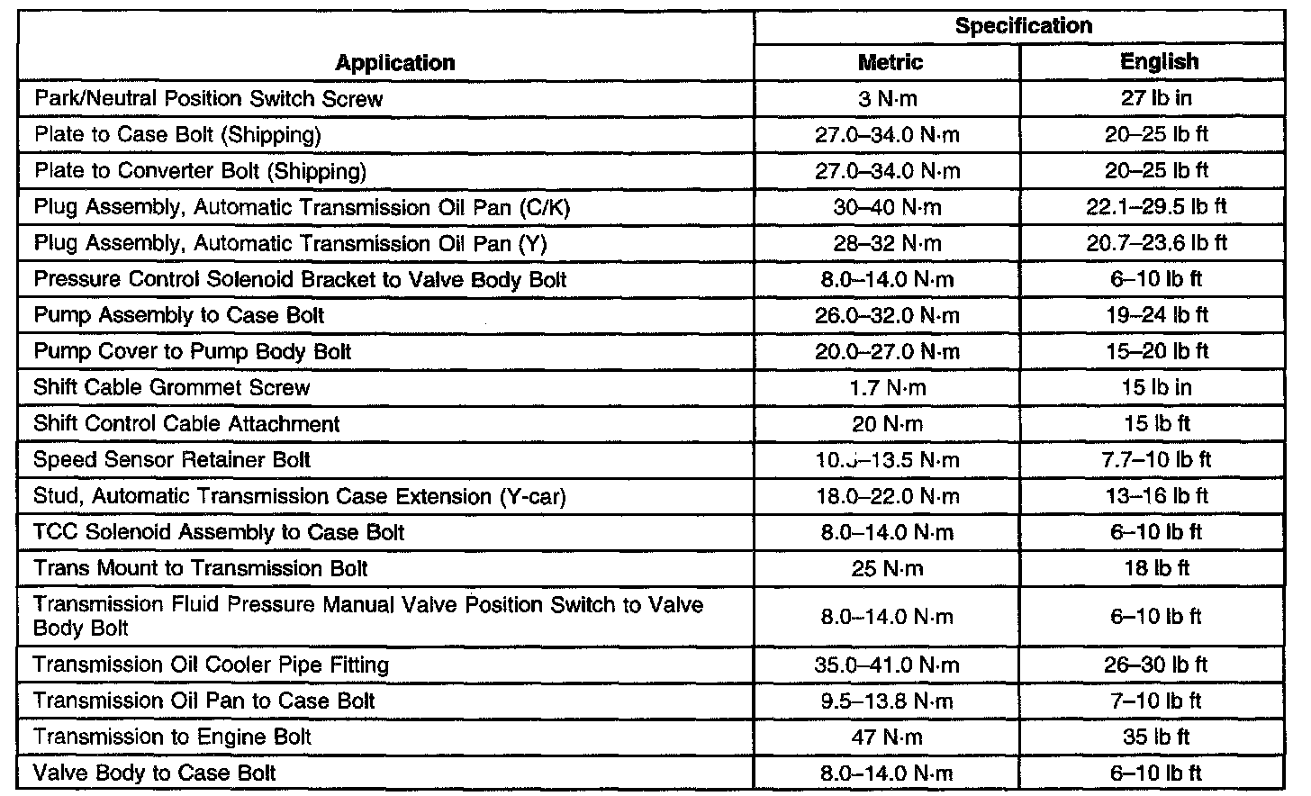 Transmission General Specifications