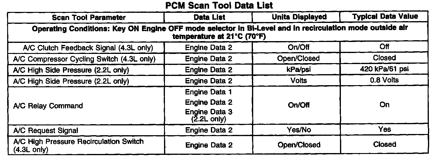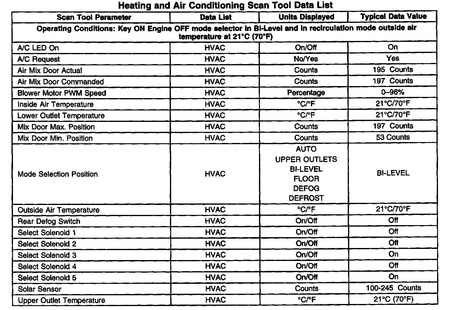 Heating And Air Conditioning Scan Tool Data List: