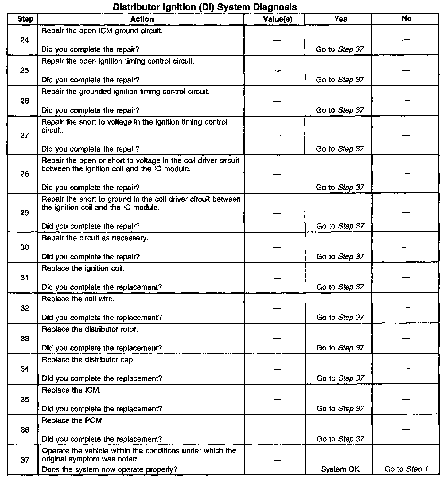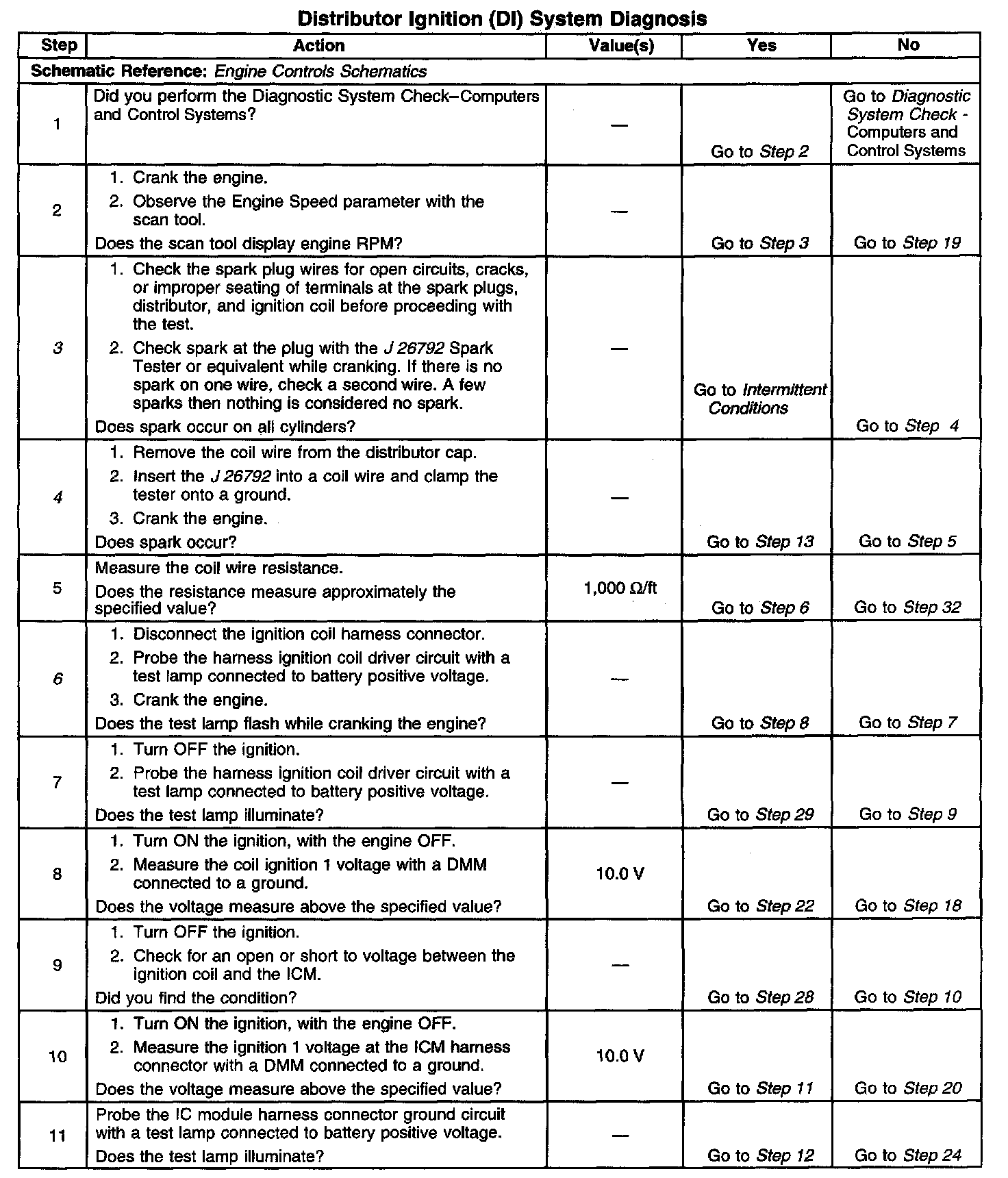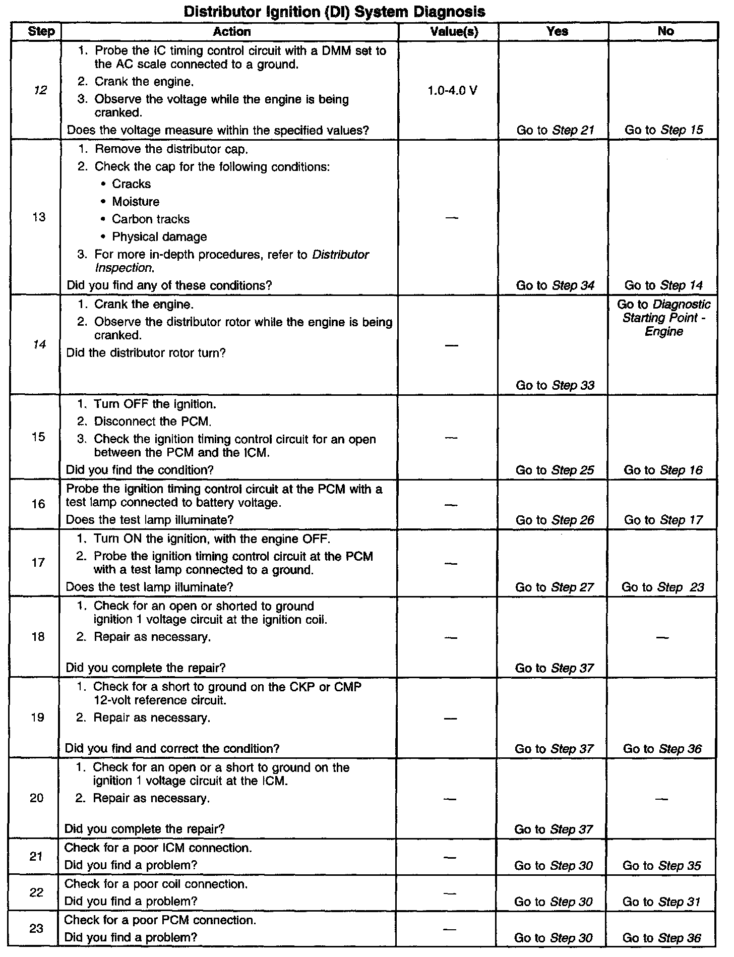 12. This test begins to determine if the PCM is providing a signal to the ICM. If the PCM is not providing a signal to the ICM, the problem exists between the ignition control module and the PCM.