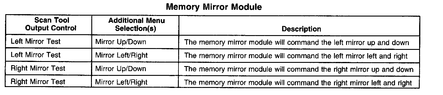Scan Tool Output Controls - Memory Mirror Module (MMM)
