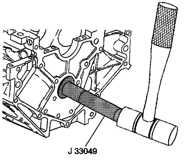 3.18. Push the J 33049 guide cone into the camshaft front bearing bore #1 in order to align the J 33049.