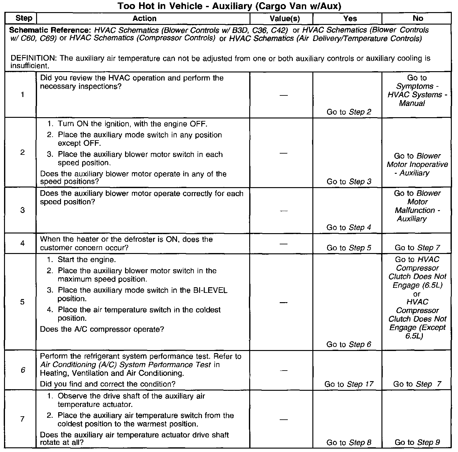 The number(s) below refer to the step number(s) on the diagnostic table.