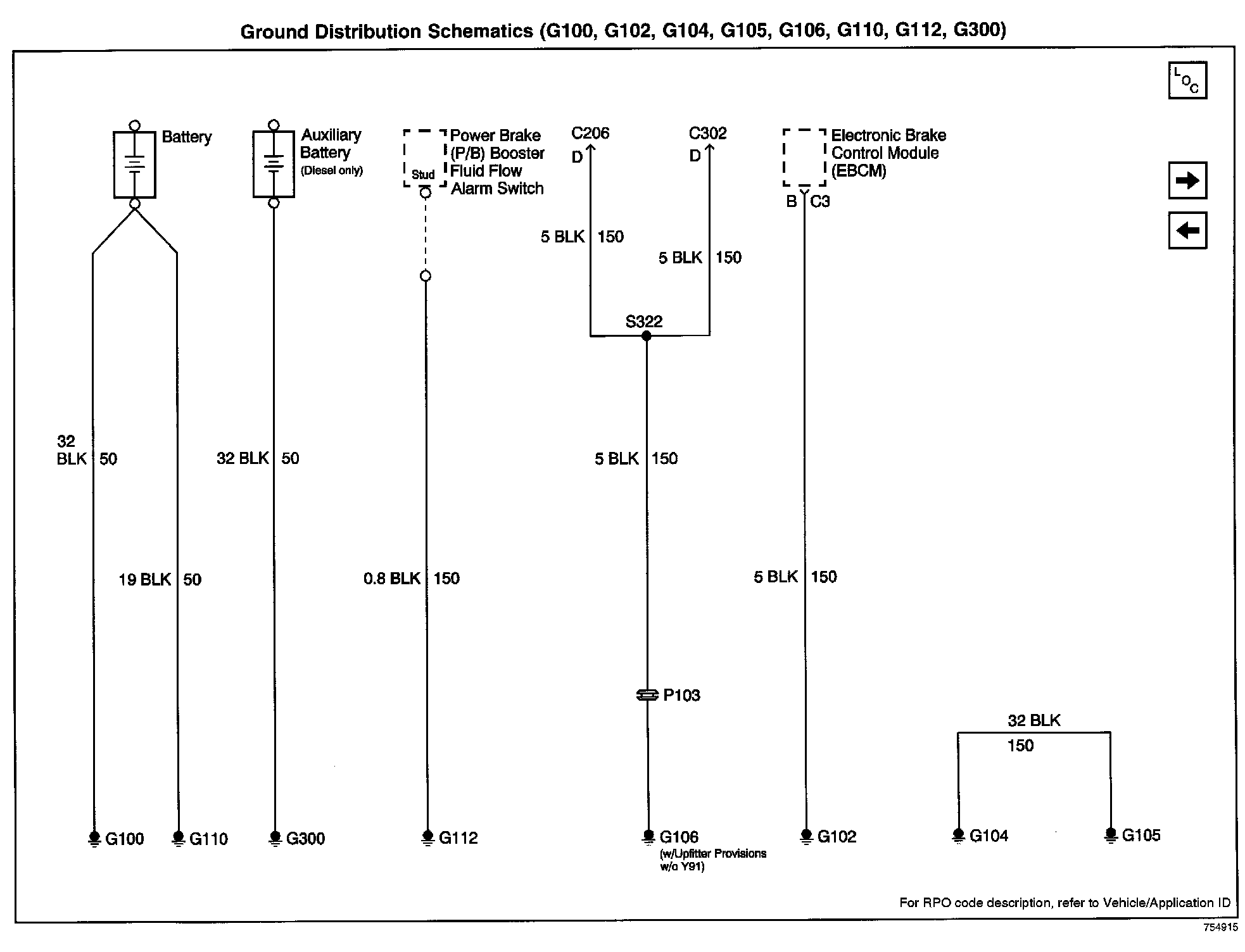 Ground Distribution Schematics: G100, G102, G104, G105, G106, G110, G112, G300: