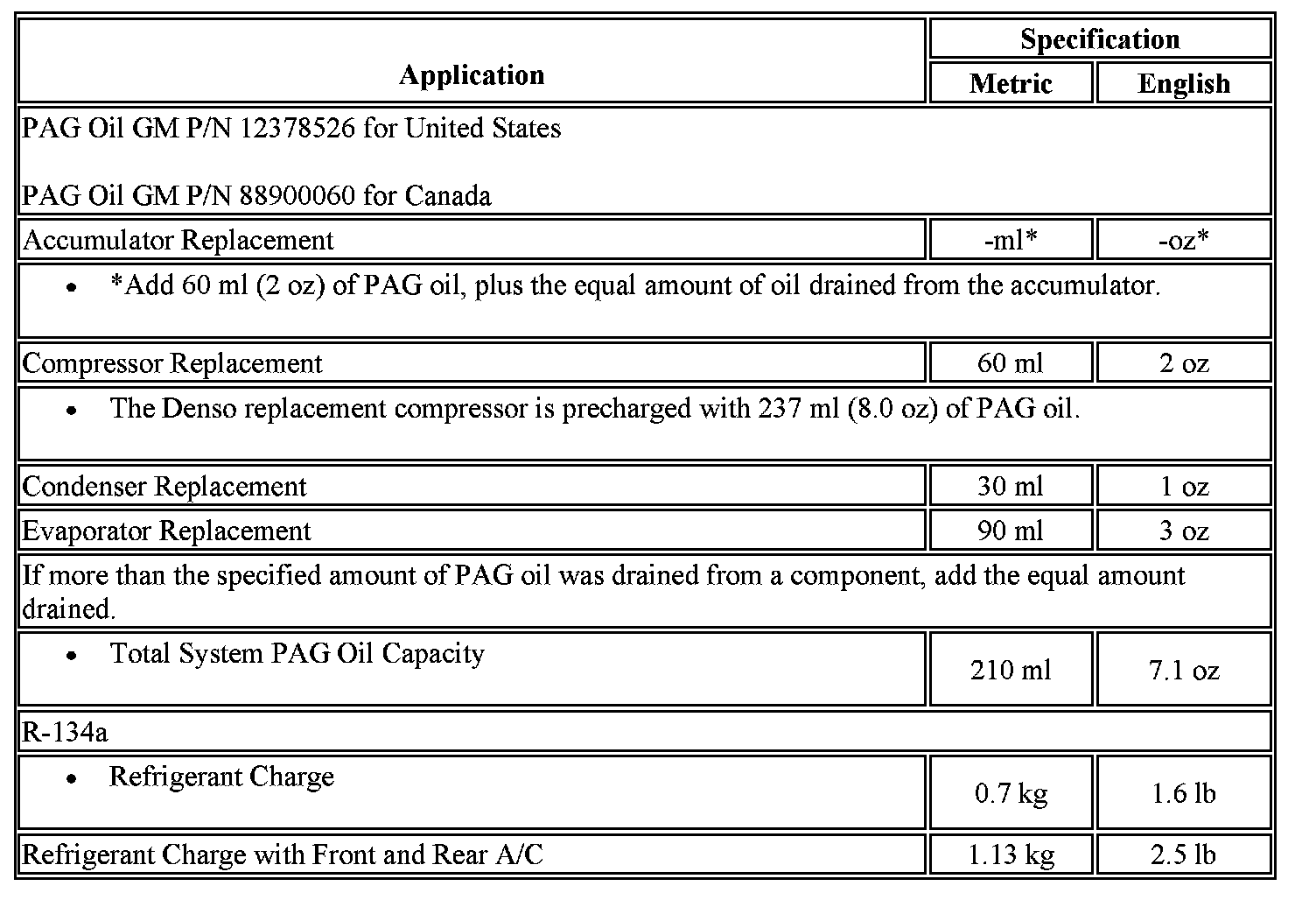 Capacity Specifications
