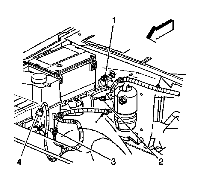 1. Disconnect the mass air flow/intake air temperature (MAF/IAT) sensor electrical connector (4).
