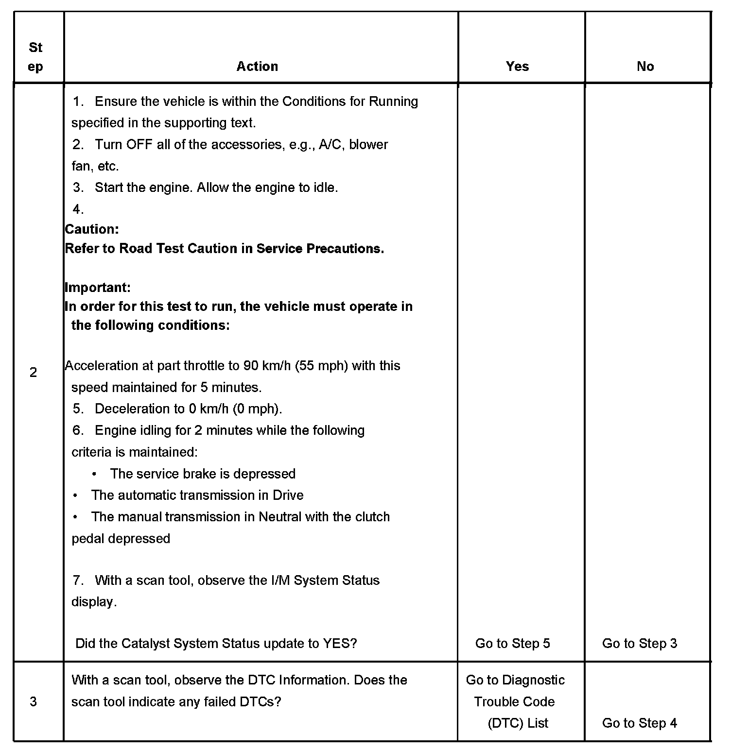 3. This step is to identify a first failure of a type B DTC. A DTC only appears on the I/M System Status display when it becomes a MIL illuminating DTC. This occurs on the second failure of a type B DTC. A first failure of a type B DTC will not allow the I/M System Status to update to YES. Refer to Diagnostic Aids.