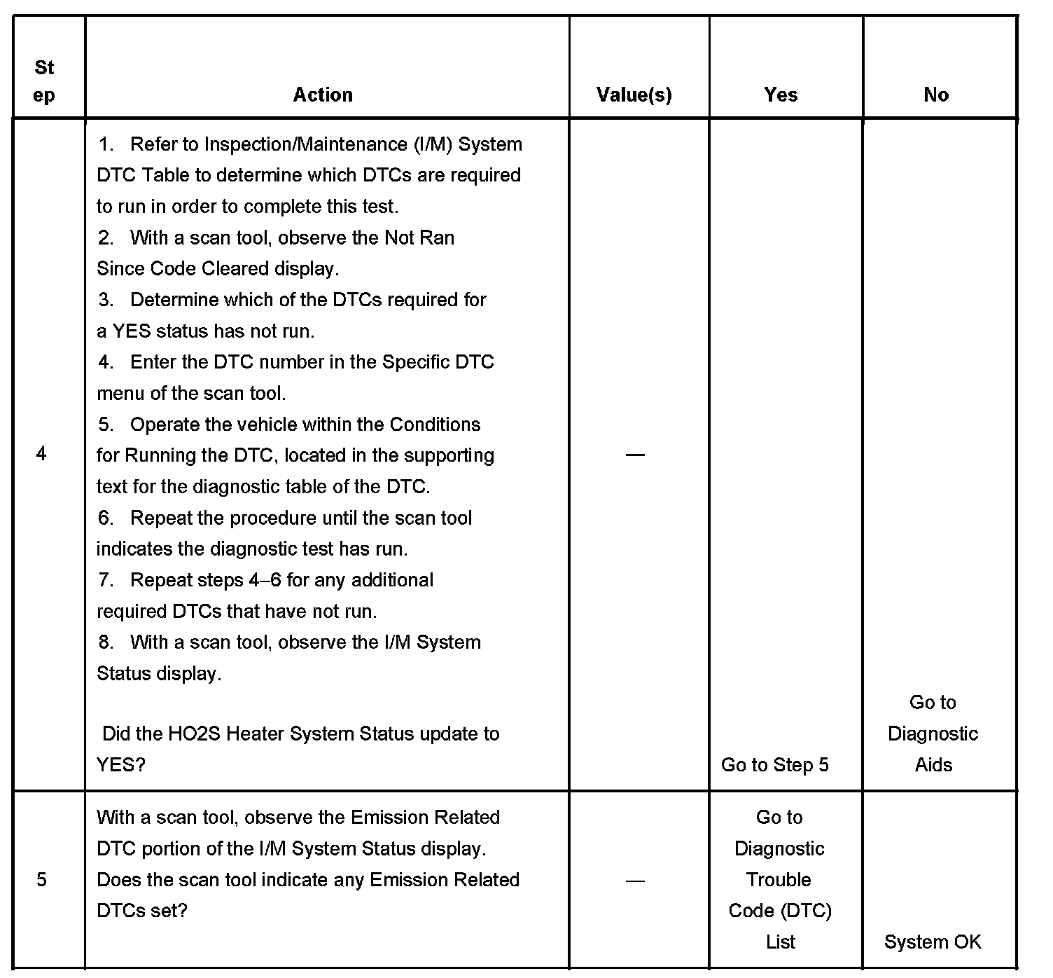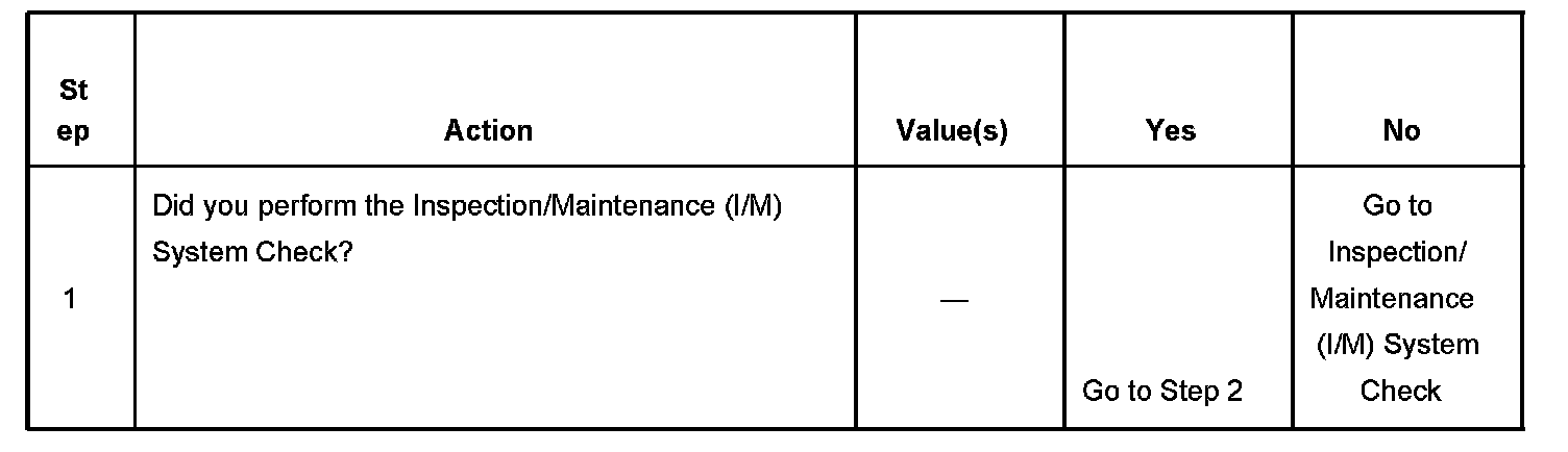 3. This step is to identify a first failure of a type B DTC. A DTC only appears on the I/M System Status display when it becomes a MIL illuminating DTC. This occurs on the second failure of a type B DTC. A first failure of a type B DTC will not allow the I/M System Status to update to YES. Refer to Diagnostic Aids.