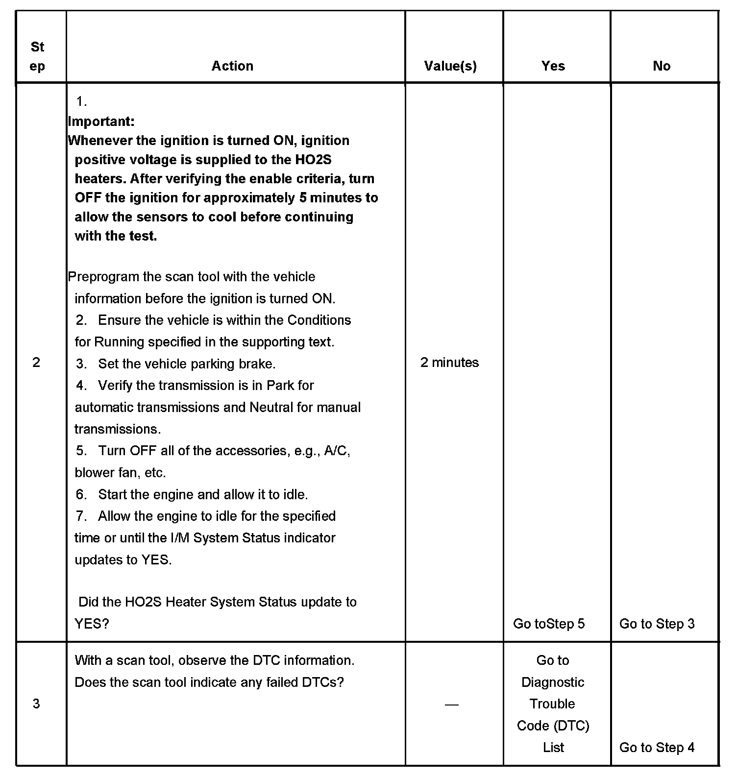 The purpose of this test is to satisfy the enable criteria necessary to execute I/M readiness diagnostics for the heated oxygen sensor (HO2S) System. The test may be used to set the I/M System Status to YES. Ensure the vehicle meets the requirements listed in Conditions for Running before performing this test. Failure to meet the necessary requirements may produce inaccurate test results.