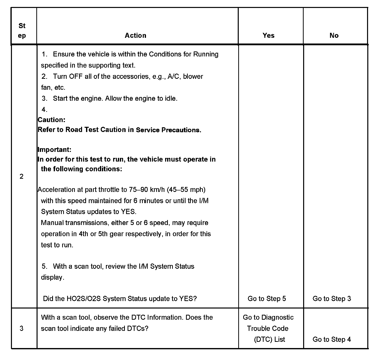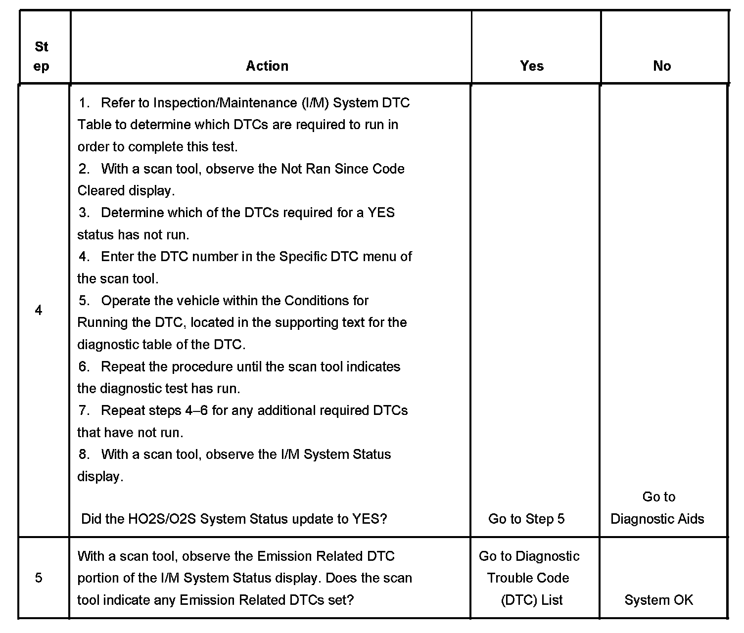 3. This step is to identify a first failure of a type B DTC. A DTC only appears on the I/M System Status display when it becomes a MIL illuminating DTC. This occurs on the second failure of a type B DTC. A first failure of a type B DTC will not allow the I/M System Status to update to YES. Refer to Diagnostic Aids.