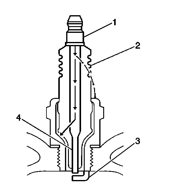 - Inspect for the correct spark plug torque. Refer to Ignition System Specifications. Insufficient torque can prevent correct spark plug operation. An over torqued spark plug, causes the insulator (2) to crack.