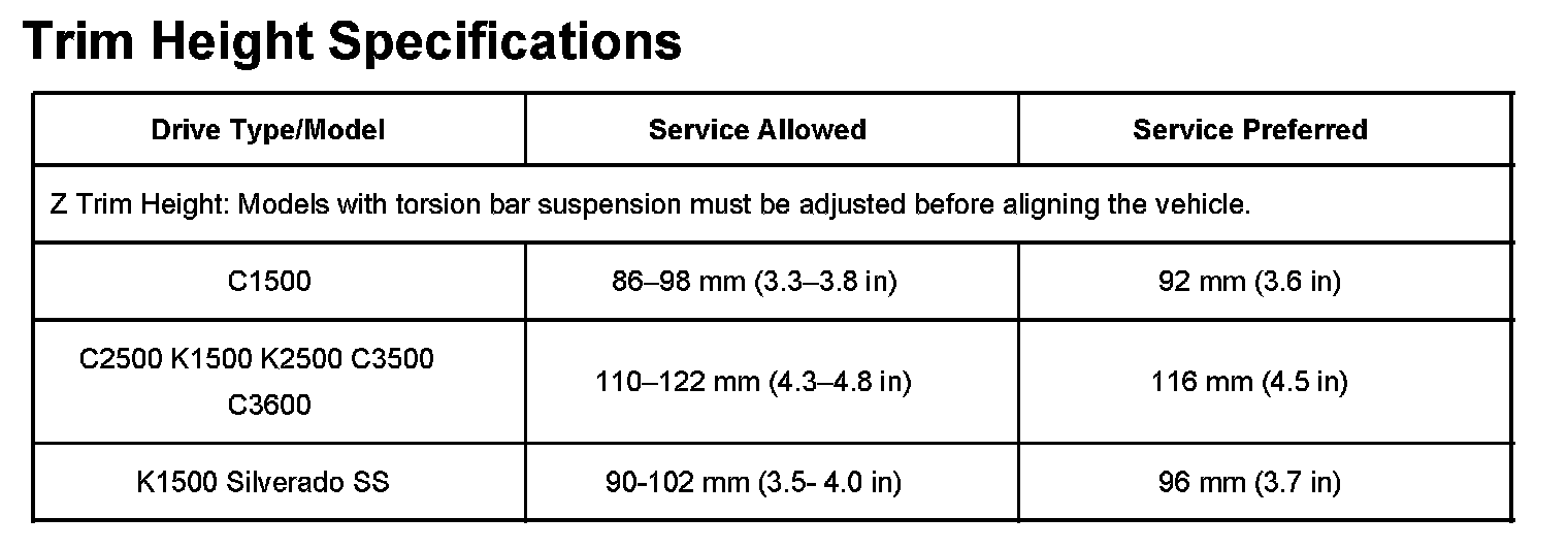 Ride/Trim Height Specifications