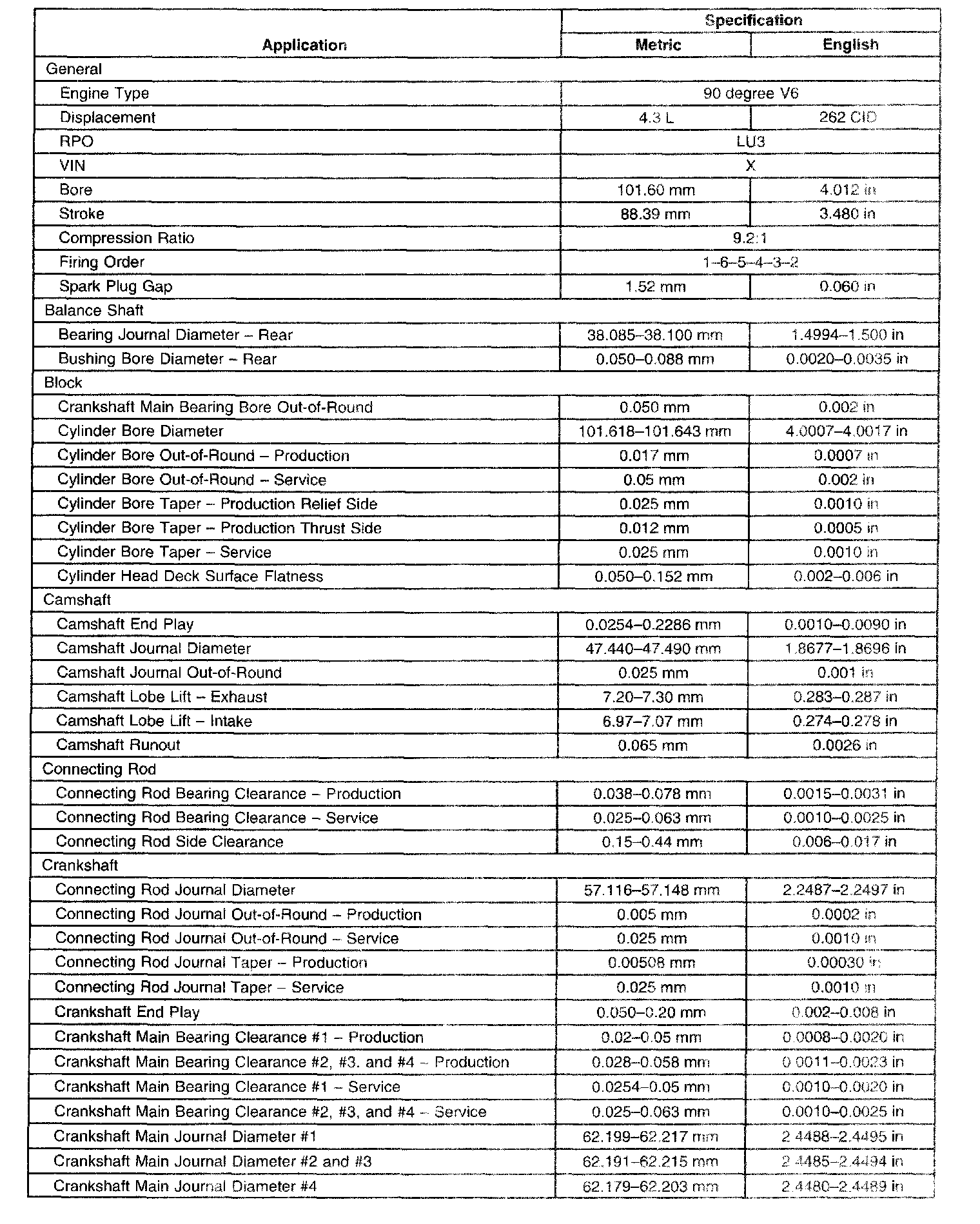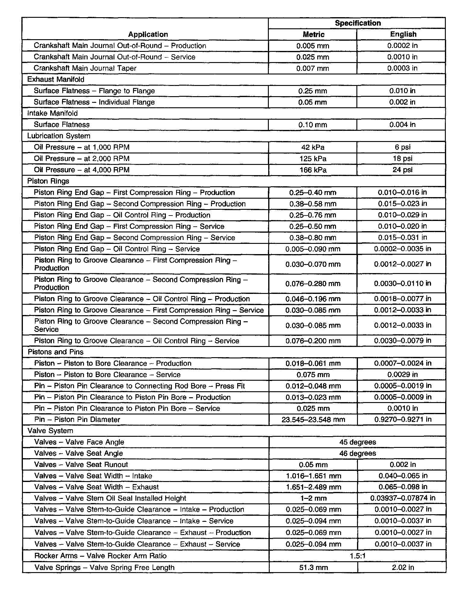 Engine Mechanical Specifications