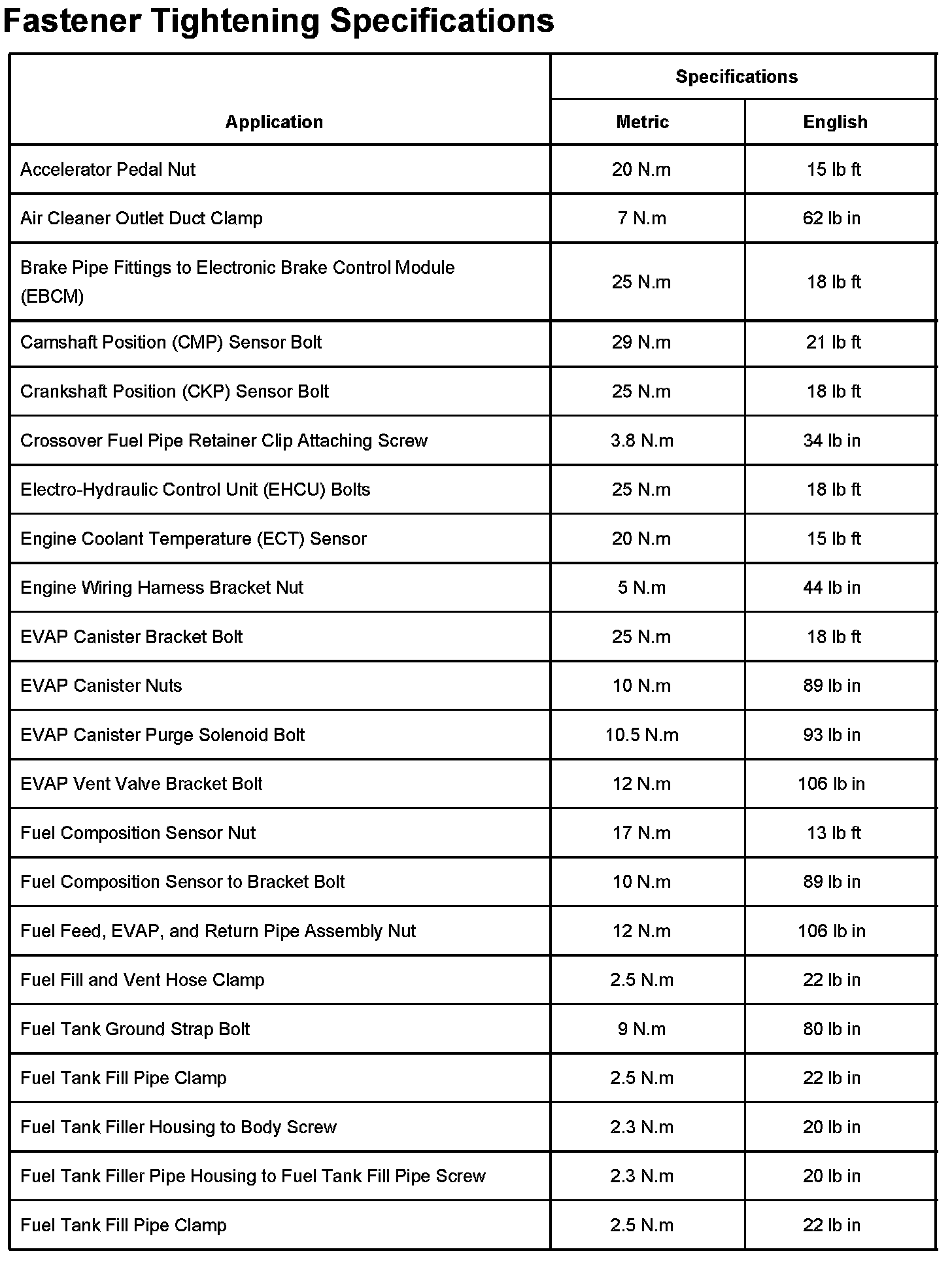 Fastener Tightening Specifications Part 1:
