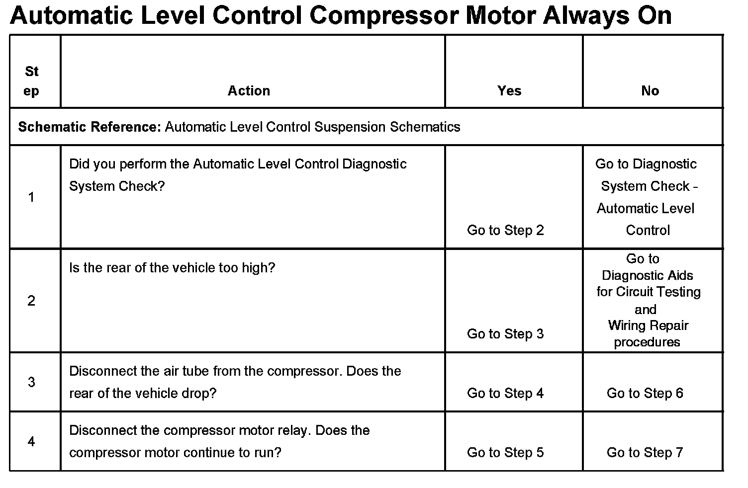 Diagnosis By Symptom - Automatic Level Control (ALC)