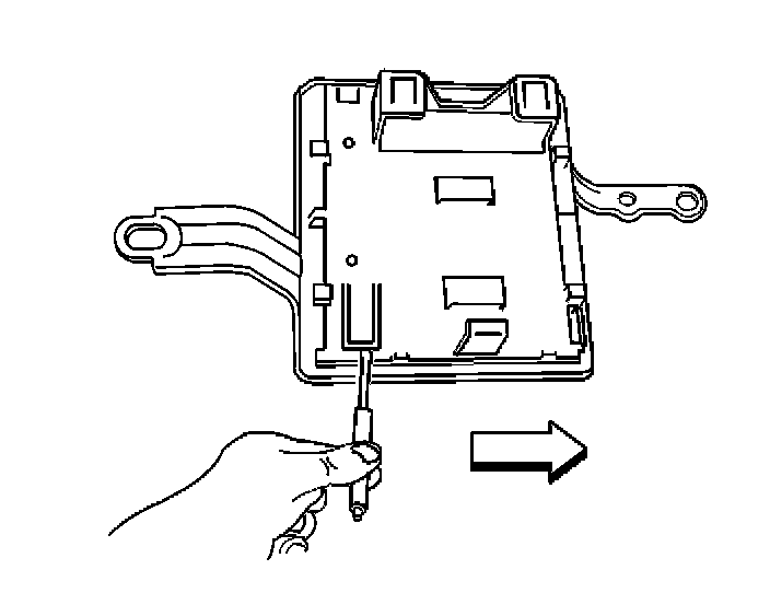 3. Using a flat bladed tool, release the retaining tab on the upper bracket.