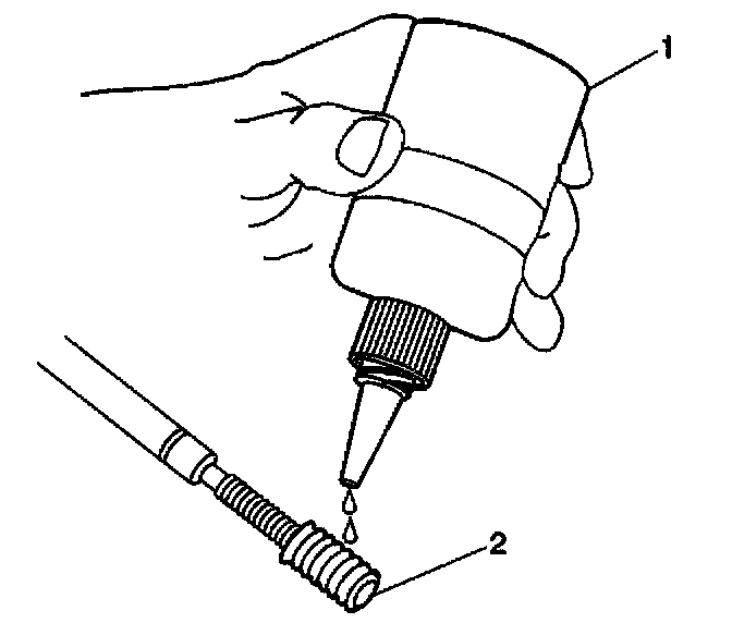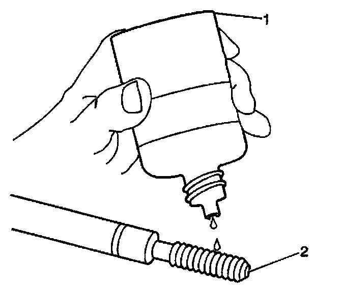10. Apply threadlock sealant GM P/N United States 12345493, GM P/N Canada 10953488, J 42385-109, LOCTITE 277 or equivalent (1) to the insert OD threads (2).