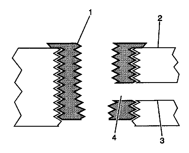 4. Tap the drilled hole until the threads at the top of the tap (2) are down to the surface of the base material.