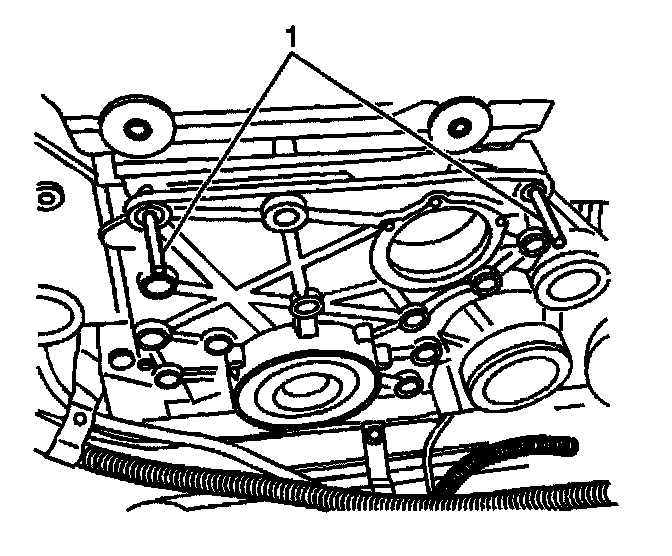 6. Install the front cover bolts, tightening the center bolt last (1).