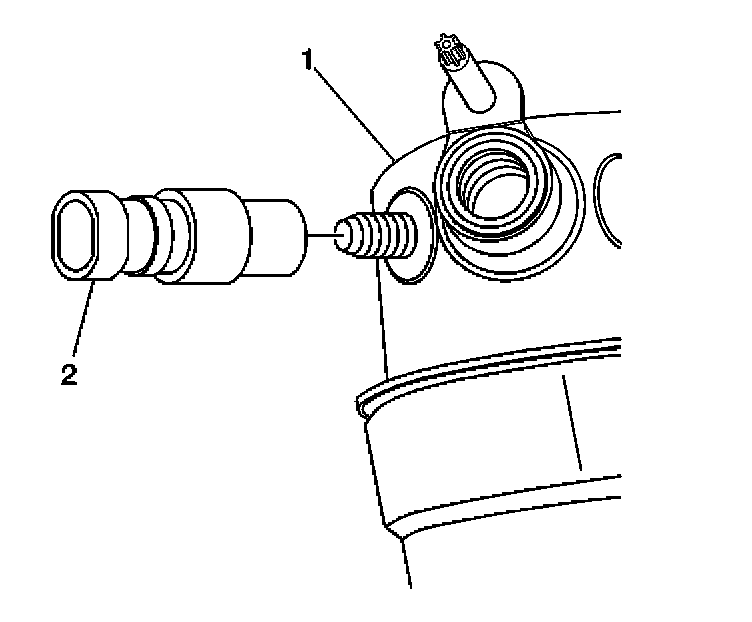 2. Remove the A/C low pressure switch (2) from the accumulator (1).