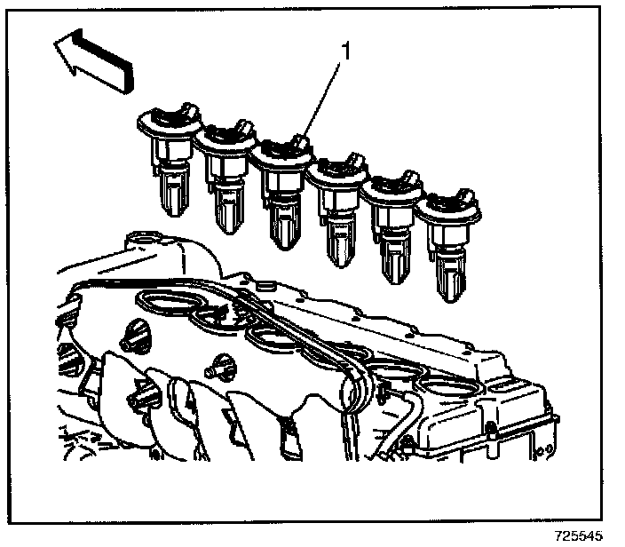 2. Disconnect the ignition coil connectors (1) from the ignition coils.