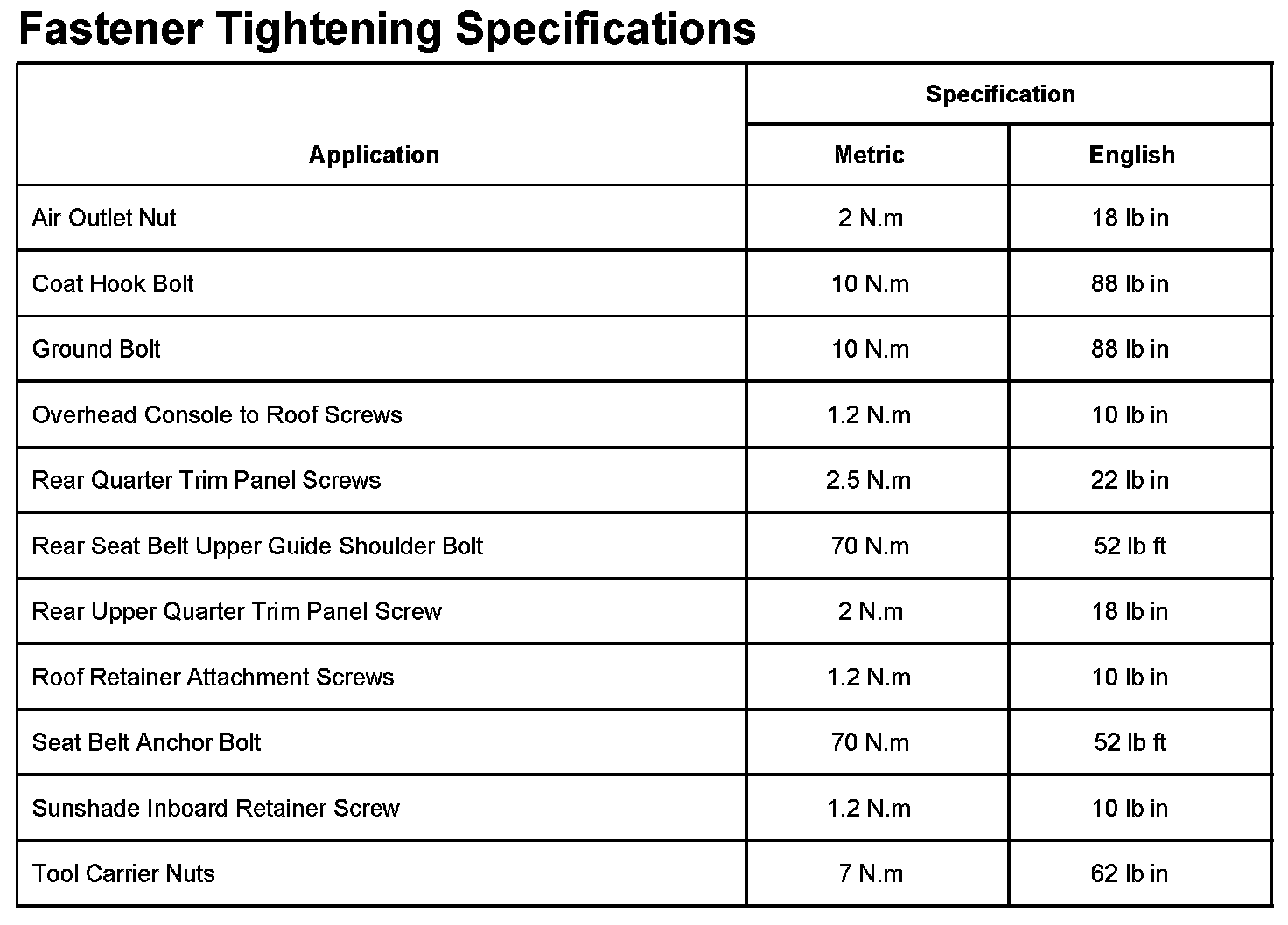 Fastener Tightening Specifications
