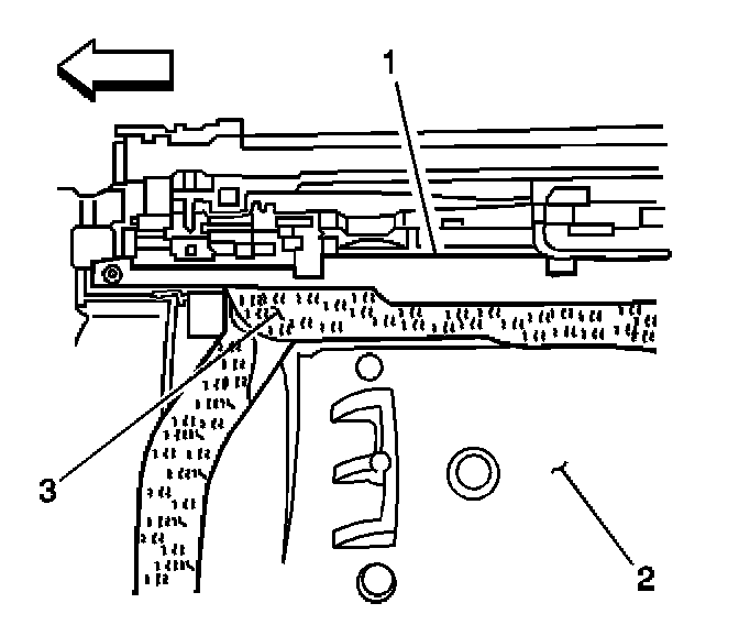 5. Flex the center of the sunshade (2) upward while simultaneously sliding the panel sideways to release the retaining tabs (3) from the track slot (1).