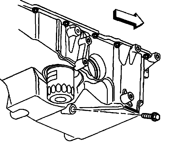 Important: In order to completely drain the oil from the oil pan internal teaming, the bottom of the oil pan must be level during the oil drain procedure.