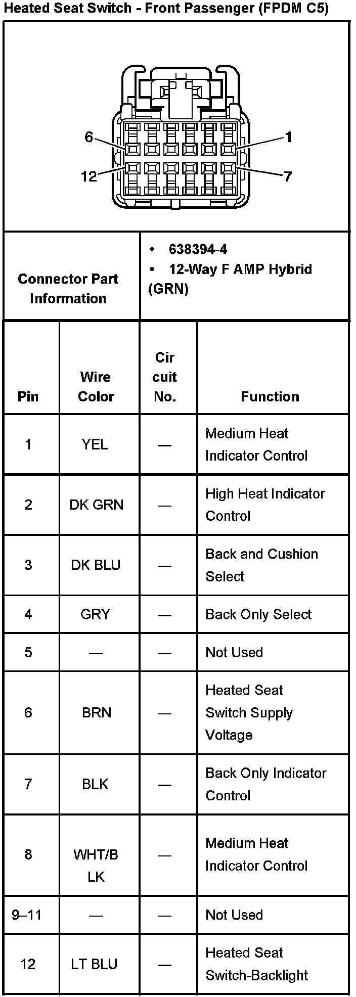 Heated Seat Switch - Front Passenger (FPDM C5):