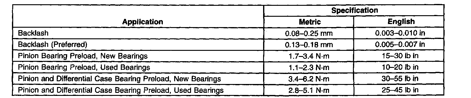Axle Preload and Backlash Specifications