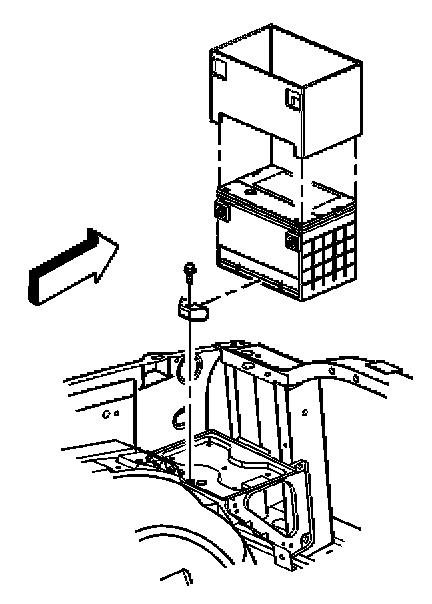5. Remove the battery hold down retainer bolt and retainer.