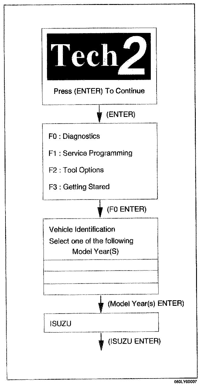 From 98 MY, lsuzu Dealer service departments are recommended to use Tech 2. Refer to Tech 2 scan tool user guide.
