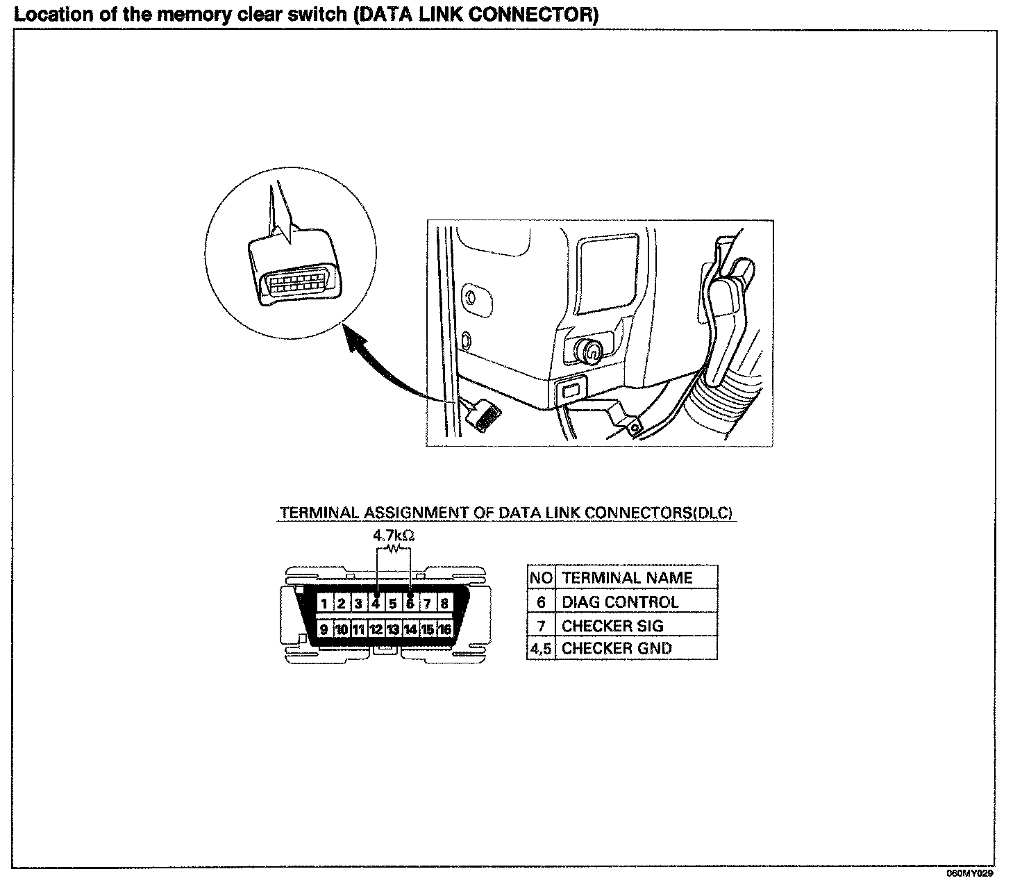 The self-diagnosis code memorized in the EEPROM with in the ECM can be eliminated only by Scan Tool or the operation of the memory clear switch