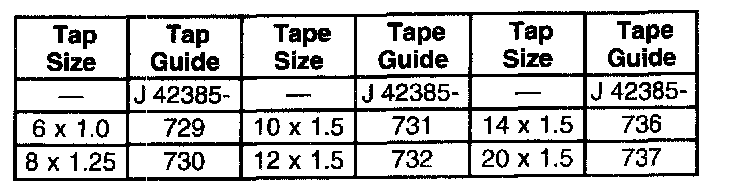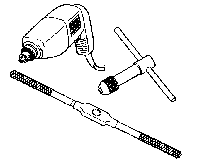 The tool kit J 42385-400 is designed for use with either a suitable tap wrench or drill motor. Limited access and larger hole repair may process better using a tap wrench. An extension J 43965 may also be necessary to drive the thread repair tooling dependent on access to the hole being repaired.